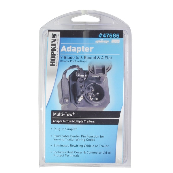 Multi-Tow design features add multiple towing options from one connector by providing sockets for towing both 6 Pole Round and 4 Flat trailers. This making it the perfect adapter for either 6 Pole Round wiring code. Included dust covers add an extra layer of weatherproofing for long lasting performance.