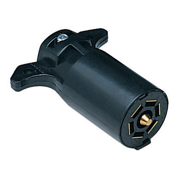 A 7 Blade connector is typically used with large trailers (RV and industrial) and is the most popular tow connector on new tow vehicles. This connector provides the following functions left/right turn, taillight, ground, auxiliary, electric brake and reverse.