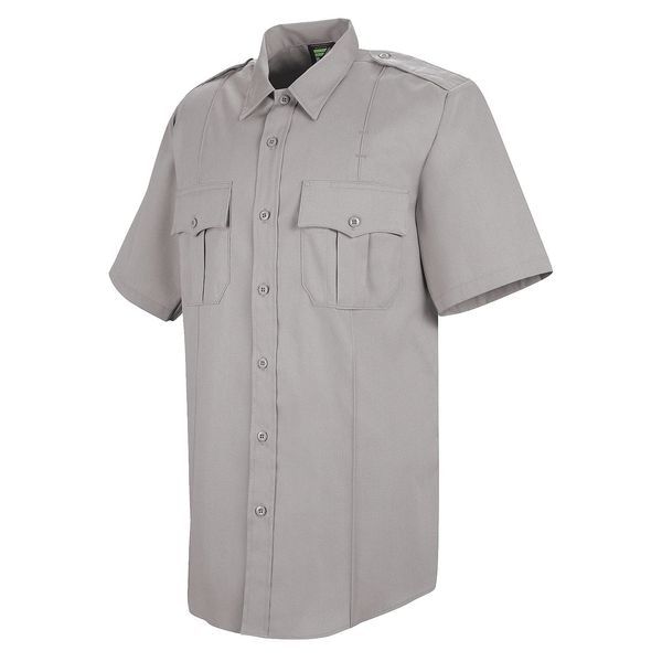 New Dimension Stretch Dress Shirt, Short Sleeve, Material 65 Percent Polyester/35 Percent Cotton, Color Gray, Neck Size 15-1/2 In., Fits Chest Size 46 In., Length 32 In., Pockets 2, Fabric Weight 4.5 Oz.