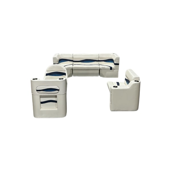 Horizon Manufacturing Elite Pontoon Furniture Set 11 PC White/Red/Charcoal Pedestal not included. _x000D__x000D_Pontoon Furniture Set Includes:_x000D_1 - 37 Bench Cushion Set 3201_x000D_1 - 37 Base 3010_x000D_2 - Radius Corner Cushion Set 3207_x000D_2 - Radius Corner Base 3011_x000D_1 - 28 Bench Cushion Set 3200_x000D_1 - 28 Bases 3009_x000D_1 - Captain/Steering Stand 3223_x000D_1 - Bucket Style Captain Chair 3206_x000D_1- Left Hand Armrest 3018