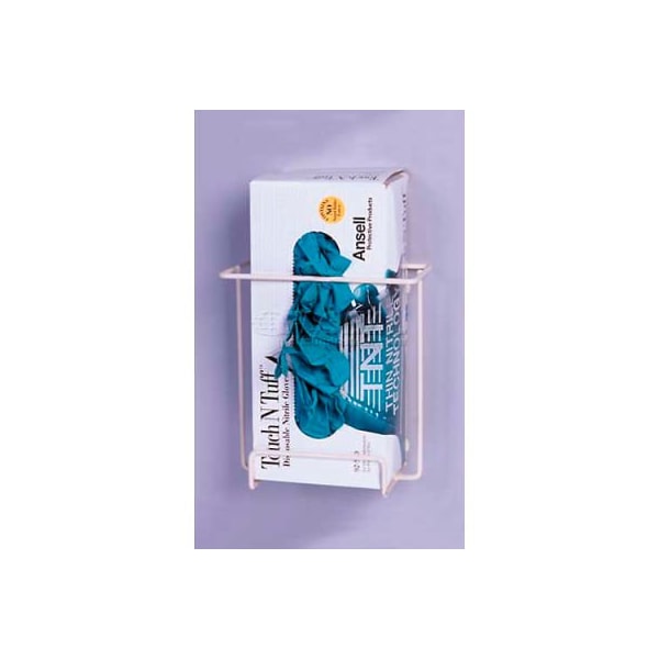 Horizon mfg. "space saver" single front dispensing exam glove rack, 8"h x 7"w x 4-1/2"d organize latex, vinyl and nitrile exam gloves for quick and easy access. Holds all glove sizes used in one convenient rack. Load with multiple quantities of fast moving gloves to reduce refill frequency and out-of-stock. Holds all manufacturers' glove boxes. Racks do not collect dust and dirt. Racks hold glove boxes close to walls. White epoxy coated for years of use. Holds 1 box. Overall measures 8"h x 7"w x 4.5"d. glove dispenser rack only. Glove boxes shown are not included.