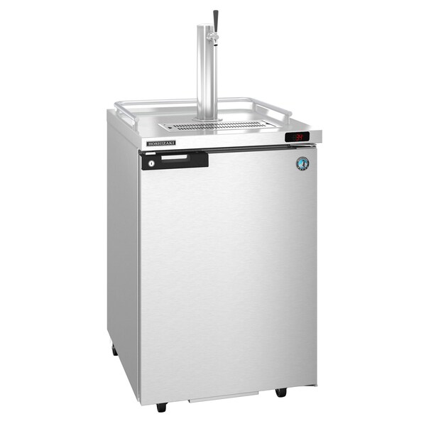 Dimensions: 24.88 in. W x 30 in. D x 39.38 in. H. Net capacity of 7.46 cubic feet. Nominal Compres. of 1056 BTU/hr at 1/6 HP. Electrical consumption of 1.32 kWh/day at 1.5 Amps, 8 ft long cord with a 5-15P NEMA plug. Engineered to maintain food safe temperatures in +100 degrees F kitchens. Includes 1 keg cushion to protect floor and allow air to circulate below kegs. One piece, vinyl coated steel handle with built-in lock. 1 polished stainless steel insulated tower with 1 plated brass faucet. Lockable swing door is insulated with environmentally friendly, CFC free foamed in place polyurethane. Rear breathing with internal drain, internal CO2 chain harness, and knockouts for gas line of for plumbing drain to outside of unit. Stainless Steel exterior front, sides and rear, plus a 18 gauge stainless steel top. Stainless steel interior with reinforced threshold protects cabinet from loading/unloading keg damage. R290 refrigerant. Automatic ''off cycle'' defrost cycle. Brushed aluminum glass rail for mug storage on top. Includes 1 keg cushion. Cabinets walls and doors well insulated 2 in. thick and are designed to maintain interior temperatures between 33 degrees F to 38 degrees F. Standard with 4 4 in. Casters front 2 with brakes. Made to Order. 115v/60/1, 8 ft. cord and plug. Shipping Crate: 34.5 in. L x 29 in. D x 45.5 in. H at 175 lbs. Cabinet fits: 1 1/2 barrel, or 1 1/4 barrel, or 2 slim 1/4 barrels, or 4 1/6 barrels.