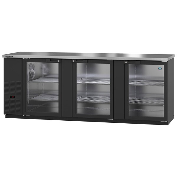 Refrigerator, Three Section, Black Vinyl Back Bar Back Bar, Glass Doors,
