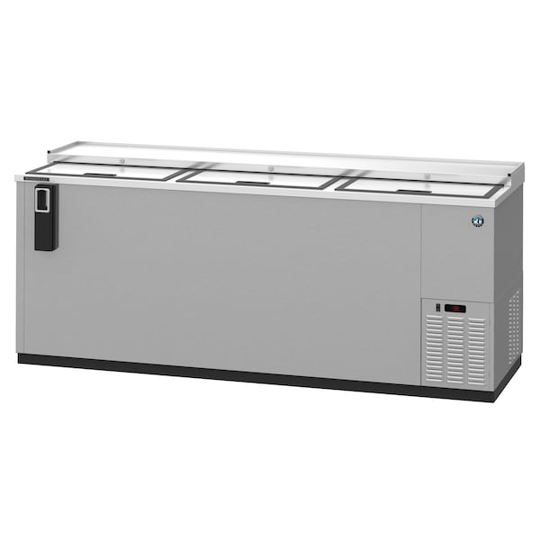 Dimensions: 80 in. W x 29 in. D x 36.88 in. H. Net capacity of 24.67 cubic feet, approx. 1150 12oz. cans or 547 20oz. bottles. Nominal Compres. of N/A BTU/hr at 1/3 HP. Electrical consumption of N/A kWh/day at 6.2 Amps, 8 ft long cord with a 5-15P NEMA plug. Engineered to maintain food safe temperatures in +100 degrees F kitchens. Includes bottle opener with cap catcher. Three slide top lids with flush inset handles. Includes 6 gray epoxy bin dividers. Durable stainless steel slide top lids include locks, can be easily removed for loading or unloading product. Front breathing, side mount refrigeration that distributes air from left to right rather than from back to front. Stainless Steel exterior front, sides and rear, plus a 18 gauge stainless steel top. Stainless steel interior. R290 refrigerant. Automatic ''off cycle'' defrost cycle. Interior floor drain for easy cleaning. Includes 6 gray epoxy bin dividers. Cabinets walls and doors well insulated 1-1/2 in. thick and are designed to maintain interior temperatures between 33 degrees F to 38 degrees F. Electronic controller with LED display degrees F or degrees C. Made to Order. 115v/60/1, 8 ft. cord and plug. Shipping Crate: 82.5 in. L x 31.25 in. D x 39 in. H at 315 lbs. Cabinet fits: 1150 12oz. cans or 547 20oz. bottles.