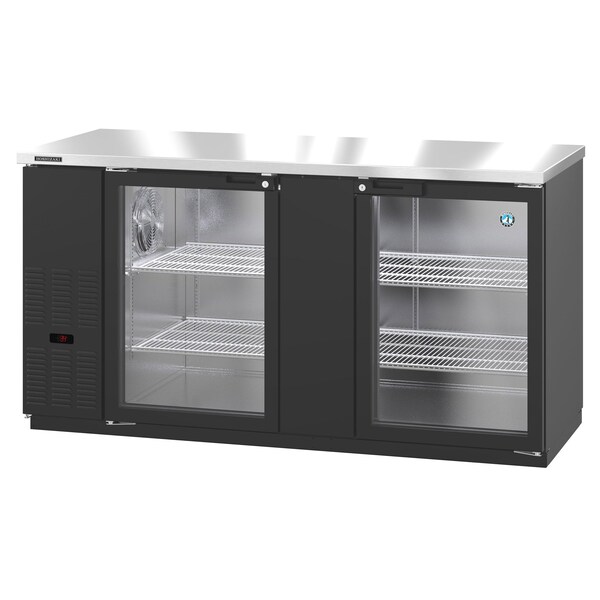 Refrigerator, Two Section, Black Vinyl Back Bar Back Bar, Glass Doors,