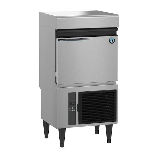Dimensions: 19-3/4 in. W x 17-3/4 in. D x 39- 1/2 in. H. Up to 50 lbs of ice produced per 24 hours. Up to 22 lbs of built-in storage capacity. Produces individual clear, solid 1.9 in. x 1.9 in. x 2.3 in. cubes. Durable stainless steel exterior. Front in, back out airflow. Ice scoop included. Foam injected polyurethane for insulation HFC free. Small footprint can easily fit under a bar counter. R-134a refrigerant 6.0 oz. / 170 g. Heat Rejection:1500 BTU/hr . Ambient temperature range: 45-100 degrees F. Water temperature range: 45-90 degrees F. Water pressure: 10-113psig. Voltage range: 104-127V. 5 amps 15 Amp Max fuse. 15.7 kwh/100 lbs.@ 90/70. Single phase, 115v/60/1, 6.5 ft. cord with NEMA 5-15 plug. Clean ice and easy maintenance lead to longer unit life span.