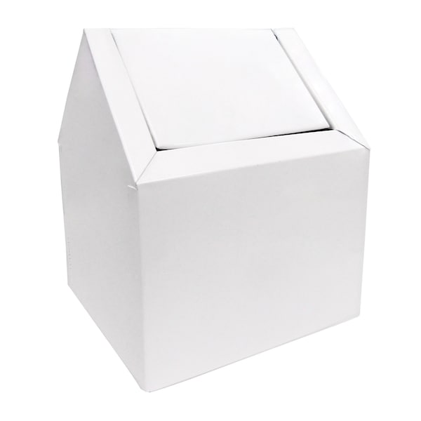 The Health Gards Swing Top Receptacle offers safe, discreet disposal of menstrual care products in public restrooms. White metal swing-top receptacle with double entry ensures privacy, supporting a sanitary restroom environment for all users.