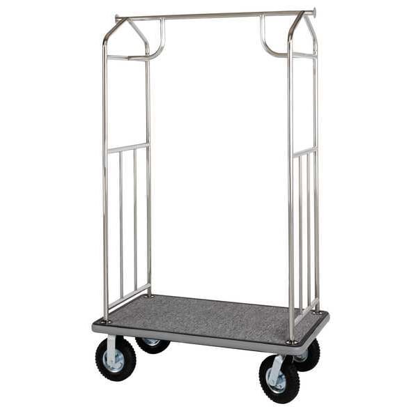 Bellmans Cart, Steel, Chrome Frame, Carpet Color Gray, Bumper Color Gray, Deck Length (In.) 42, Deck Width (In.) 24, 71 In. Height, 24 In. Depth, 42 In. Width, Chrome Finish, 8 Caster Dia. (In.), Load Capacity (Lb.) 1200