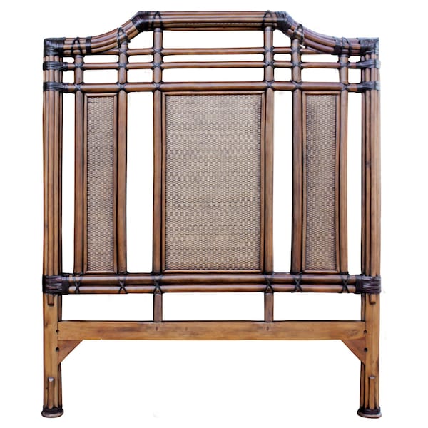 The Palm Cove twin headboard is a stunning and timeless addition to any bedroom or master suite that will transport you to a tropical paradise. This collection features a blend of rattan woven weave and multiple pencil rattan poles tied together with leather bindings. The exotic combination is finished in a rich two-tone antique color, making it a statement piece in any bedroom dcor. With its stylish and unique design, this headboard will create a focal point in your dream bedroom.