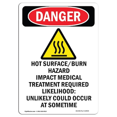 OSHA Danger Sign, Hot Surface, 10in X 7in Aluminum, 7" W, 10" H, Portrait, OS-DS-A-710-V-2407