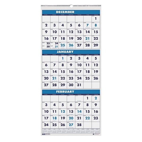 Three-Month Format Wall Calendar, Refills No, Calendars-Wall, Sheet Size 12-1/4 x 27 In., Format Three Months Per Page, Color White