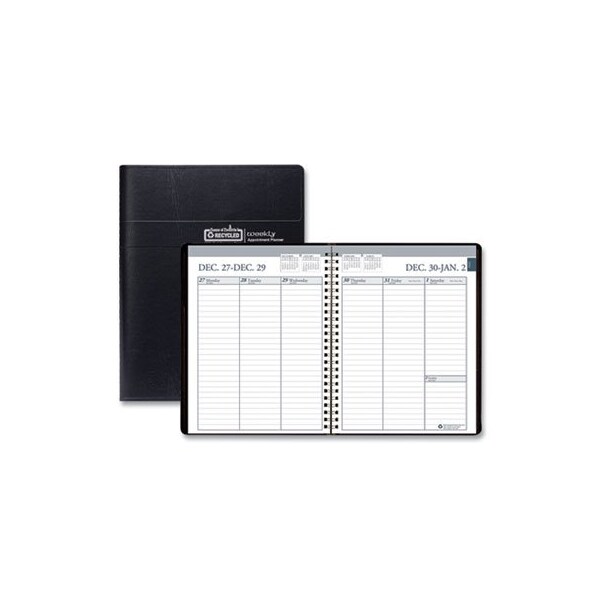 Full-week view on each one-page spread with open-schedule ruling to accommodate a flexible appointment scheduling. Columnar format provides one column per weekday and one combined column for Saturday and Sunday. Future-planning section for the following year, a memo section and a name/address section, a three-year reference calendar page for long-range planning and an important holiday date list spanning three years. Made entirely of recycled materials. Dated/Undated: Dated; Calendar Format: Weekly; Page Format: One Week per Two-Page Spread; Edition Year: 2023.