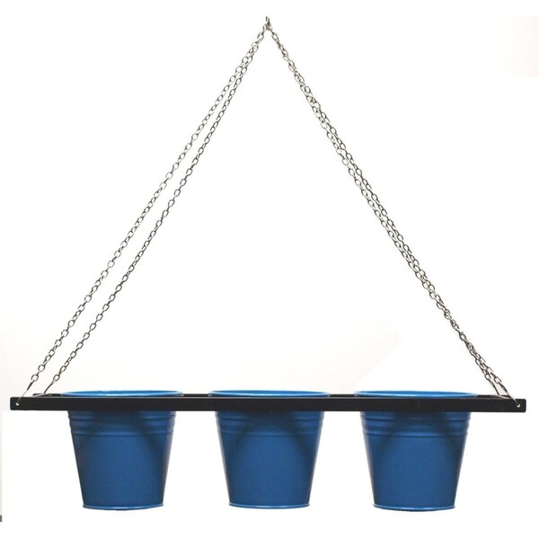 Enameled Galvanized Triple Hanging Planter with Iron Holder, Blue