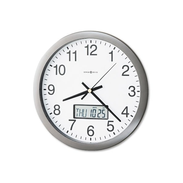 Howard Miller Chronicle Wall Clock with LCD Inset, 14" Overall Diameter, Gray Case, 1 AA (Discontinued)