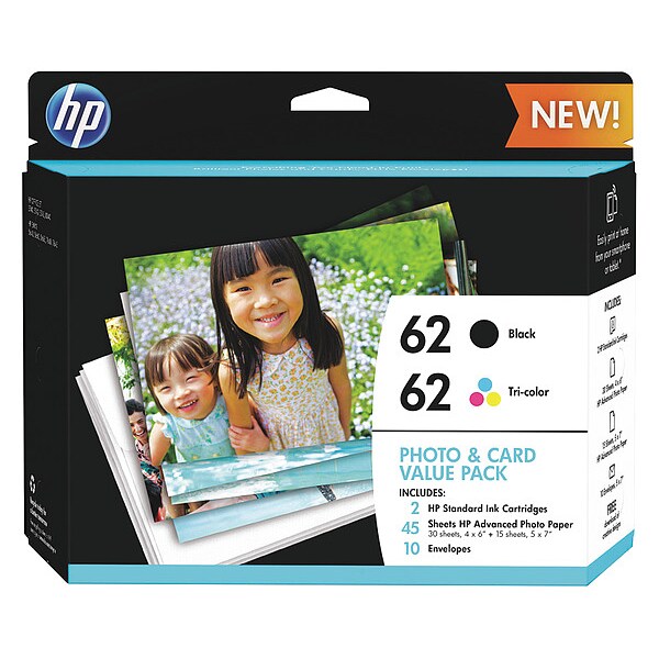 Market Indicator Cartridge No. 62, Ink/Toner Color Black/Tri-Color, Printer Brand HP, Printer Series ENVY, OfficeJet, Printer Model ENVY 5660, ENVY 7640, ENVY 8000, OfficeJet 5740, OfficeJet 8040, Max. Page Yield 200, Color Black, Tri-Color, Cartridge Condition New, Ink Cartridge, For Use With HP ENVY 5660, 7640, 8000, Officejet 5740, 8040