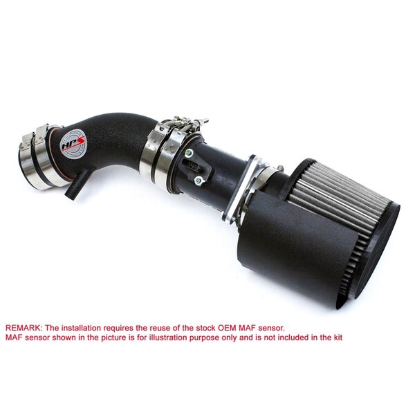 The All-New HPS Performance 827 Series Air Intake Kit (Black, Part # 827-570WB) for 2002-2006 Nissan Altima 2.5L 4Cyl offers a free-flowing 3 inch mandrel-bent aluminum tube induction system designed to increase horsepower, torque and improve throttle response while maintaining safe air fuel ratio. The included heat shield blocks the hot air from the air filter for the best cooling effect. The included installation manual has clear pictures and instructions to guide the installer throughout the whole process. The kit does NOT require tuning and does not trigger CEL light. No modification is required during the installation. HPS light weight mandrel-bent aluminum alloy tube replaces the stock restrictive air box and optimize the air flow with excellent heat dissipation and long lasting durability. HPS Performance 827 Series air intake kit features race proven reinforced silicone hoses and industrial grade 100% stainless steel T-bolt clamps which ensures reliability, even during the most extreme driving conditions. The All-New HPS Performance Air Filter is designed with performance in mind, delivering excellent filtration without sacrificing air flow.