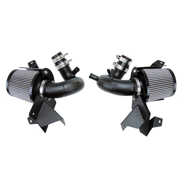 The HPS Performance Air Intake Kit offers free-flowing dual 2.75 in mandrel-bent aluminum tube induction system designed to produce dyno proven performance gains 21 horsepower and 20.6 lb-ft of torque, improving throttle response while maintaining safe air fuel ratio. The heavy duty powder coated steel heat shield integrates the factory fresh air scoop to direct cold air to the air filters for the best cooling effect. The included installation manual has clear pictures and instructions to guide the installer throughout the whole process. No modification is require to complete the installation. HPS light weight mandrel-bent aluminum alloy tubes replace the stock rubber intake tubes and restrictive air box to optimize air flow with the provided reusable HPS Performance Air Filters. HPS Performance Air Intake Kits feature race proven reinforced silicone hoses and industrial grade 100% stainless steel T-bolt clamps which ensures reliability, even during the most extreme driving conditions.