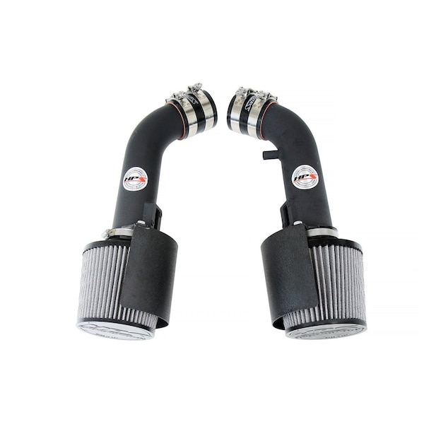 HPS Performance Air Intake Kits are designed with style and performance in mind. This HPS Performance Air Intake Kit replaces the factory intakes and air filter housings with 2.75 in custom mandrel-bent aluminum tubes and heavy duty powder coated heat shields designed to maximize the engine's output. It also includes reusable high-flow cotton air filters to provide maximum airflow. Dyno testing proved power gains of up to 11 horsepower and 7.6 lb-ft. of torque that's felt through improved throttle response and acceleration. This kit comes with both HPS 100% stainless steel T-bolt clamps and silicone couplers that are engineered to withstand the toughest driving conditions. HPS Performance Air Intake Kits are designed and tested using the latest technology to ensure the best performance and fitment.