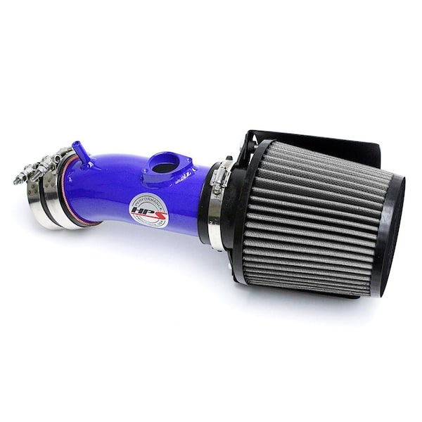 Built for performance and show, the HPS Blue shortram air intake with heat shield for 2014-2017 Mazda Mazda6 2.5L Skyactiv offers a free-flowing mandrel-bent aluminum tube induction system designed to produce dyno proven performance gains +5.3 Whp horsepower, +5.6 Ft/lbs torque and improve throttle response while maintaining safe air fuel ratio. Compare to the cold air intake, HPS short ram cool air intake is a convenient way to change your intake in case of rainy days where water might be inducted into your cold air system. The included installation manual has clear pictures and instructions to guide the installer throughout the whole process. The kit does NOT require tuning. No modification is required during the installation. HPS light weight mandrel-bent aluminum alloy tube replaces the stock restrictive air box and optimize the air flow with excellent heat dissipation and long lasting durability. HPS shortram air intake kit features HPS signature race proven reinforced silicone hoses and industrial grade 100% stainless steel T-bolt clamps which ensures reliability, even during the most extreme driving conditions. The All-New HPS Performance Air Filters are made in the United State and are designed with performance in mind, delivering excellent filtration without sacrificing air flow. Washable and reusable. NOT CARB Complaint. Vehicle Application: 2014-2017 Mazda Mazda6 2.5L Skyactiv .