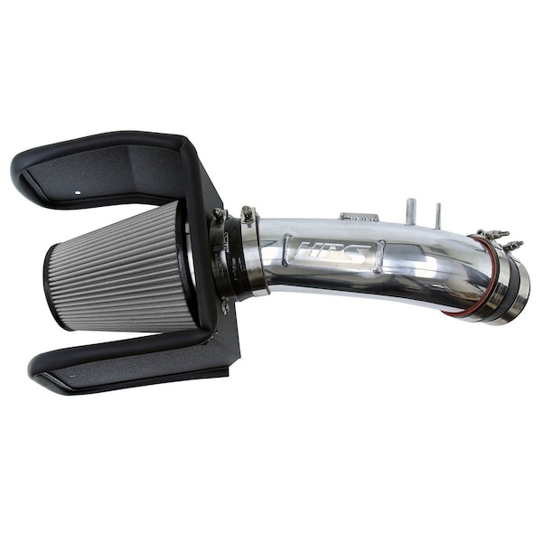 HPS polish performance air intake kit with heat shield part number 827-635P for 2008-2018 Lexus LX570 5.7L V8 offers a free-flowing 4 in mandrel-bent aluminum tube induction system designed to improve throttle response and produce dyno proven performance gains +12.4 Whp horsepower, +17.6 Ft/lbs torque while maintaining safe air fuel ratio. The heavy duty powder coated steel heat shield included in the kit blocks out the heat from engine and maximize the cooling effect. The included installation manual has clear pictures and instructions to guide the installer throughout the whole process. The kit does NOT require tuning and does not trigger CEL light. No modification is required during the installation. HPS light weight 4 in mandrel-bent aluminum alloy piping replace the stock restrictive air box and optimize the air flow with long lasting durability. HPS performance air intake kit features HPS signature race proven reinforced silicone hoses and industrial grade 100% stainless steel T-bolt clamps which ensures reliability, even during the most extreme driving conditions. The All-New HPS Performance Air Filter is designed with performance in mind, delivering excellent filtration without sacrificing air flow. Washable and reusable. All HPS Performance Air Filters are backed by HPS One-Year Limited Warranty. NOT CARB Complaint. This HPS intake is designed for 2008-2018 Lexus LX570 5.7L V8