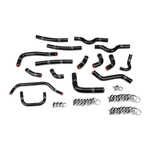 This HPS High Temp 3-ply Reinforced Silicone Heater and Bypass Coolant Hose Kit is designed to replace stock OEM rubber heater, oil cooler, and bypass hoses which weaken over time, leading to premature failure. Upgrade old and worn out hoses in the engine bay to extend the life of your SUV. With premium quality materials and race proven design, this silicone hose kit can withstand the harsh high temperature and high pressure operating conditions whether you are off-roading or daily driving. HPS silicone hose kits have all the correct bends and sizes for a perfect fit replacement for your OEM rubber coolant hoses. Compared to the universal hoses you can get from the local auto store, HPS silicone hose kits are much easier to work with. Maximum temperature rating: 350 degrees Fahrenheit. 100% stainless steel clamps are included for easy installation.