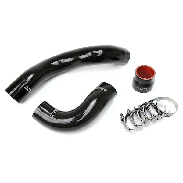 This HPS High Temp 4-ply Reinforced Silicone Intercooler Hose Kit is designed to replace the stock OEM rubber inlet, outlet, and connector hoses which weaken and fail over time. With premium quality silicone and race inspired design, this intercooler hose kit can withstand the harsh, high temperature and high pressure operating conditions under the hood through a wide range of driving conditions. HPS silicone hose kits have all the correct bends and dimensions to perfectly fit as replacements for OEM rubber intercooler hoses. Compared to the universal hoses from the local auto store, HPS silicone hose kits are much easier to work with. Maximum temperature rating: 350 degrees Fahrenheit. 100% stainless steel T-bolt clamps are included for easy installation.