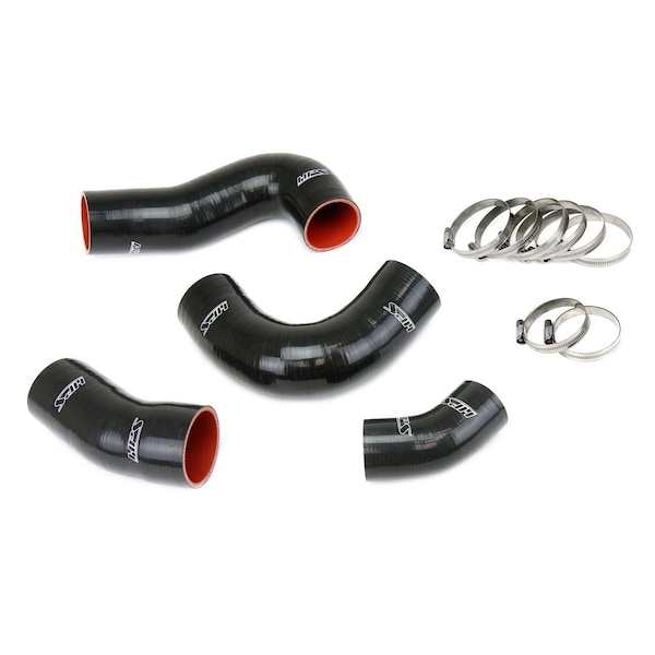 This HPS High Temp 4-Ply Reinforced Silicone Intercooler Hose Kit replaces the old stock OEM intercooler hoses with premium quality silicone. With 4-plies of polyester reinforcement, this kit can withstand high boost pressure and high temperature conditions under the hood through a wide range of driving conditions. Protect your vehicle and mitigate the risk of boost leak with silicone intercooler hoses. This HPS silicone hose kit is designed using OEM parts to ensure a perfect fit. Maximum temperature rating: 350 degrees Fahrenheit. 100% stainless steel embossed hose clamps are included for easy installation.