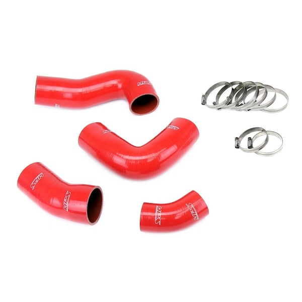 This HPS High Temp 4-Ply Reinforced Silicone Intercooler Hose Kit replaces the old stock OEM intercooler hoses with premium quality silicone. With 4-plies of polyester reinforcement, this kit can withstand high boost pressure and high temperature conditions under the hood through a wide range of driving conditions. Protect your vehicle and mitigate the risk of boost leak with silicone intercooler hoses. This HPS silicone hose kit is designed using OEM parts to ensure a perfect fit. Maximum temperature rating: 350 degrees Fahrenheit. 100% stainless steel embossed hose clamps are included for easy installation.