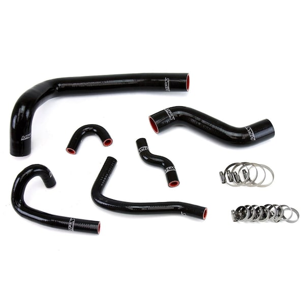 Mazda 93-95 RX7 FD3S HPS High Temp 3-ply Reinforced Silicone Radiator and Heater Hose Kit Black is designed to replace stock OEM rubber hoses which can eventually weaken over time, leading to premature failure. With premium quality silicone and race inspired design, this HPS silicon Radiator and Heater Hose Kit can withstand the harsh high temperature and high pressure operating conditions of the engine yet still maintaining peak efficiency during competition or daily driving. HPS silicone Radiator and Heater Hose Kit has all the correct bends and curves for a perfect fit replacement for your OEM rubber coolant hoses, compare to the universal hoses you can get from the local auto store, HPS hose kit is much easier to work with. Max. Temperature Rating: 350 deg. F. 100% Stainless Steel Clamps are included for easy installation. This product fits Mazda 1993-1995 RX7 FD3S .