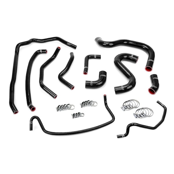 Ford 2015-2016 Mustang GT 5.0L V8 HPS High Temp 3-ply Reinforced Silicone Radiator and Heater Hose Kit Black is designed to replace stock OEM rubber hoses which can eventually weaken over time, leading to premature failure. With premium quality silicone and race inspired design, this HPS silicon Radiator and Heater Hose Kit can withstand the harsh high temperature and high pressure operating conditions of the engine yet still maintaining peak efficiency during competition or daily driving. HPS silicone Radiator and Heater Hose Kit has all the correct bends and curves for a perfect fit replacement for your OEM rubber coolant hoses, compare to the universal hoses you can get from the local auto store, HPS hose kit is much easier to work with. Max. Temperature Rating: 350 deg. F. 100% Stainless Steel Clamps are included for easy installation. This product fits Ford 2015-2016 Mustang GT 5.0L V8.