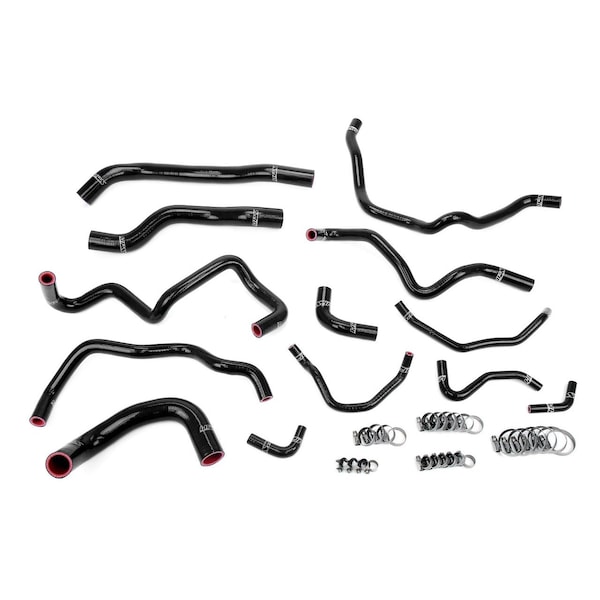 This HPS High Temp 3-ply Reinforced Silicone Coolant Hose Kit is a comprehensive 13 piece kit to replace stock OEM rubber radiator, heater, oil cooler, and ancillary coolant hoses which can weaken over time, leading to premature failure. With premium quality materials and racing inspired design, this silicone hose kit can withstand the harsh high temperature and high pressure operating conditions to mainta in peak performance during competition or daily driving. HPS silicone hoses have an increased maximum temperature rating over stock rubber hoses at 350 degrees Fahrenheit. HPS silicone hose kits have all the correct bends and dimensions for a stress free direct fit replacement. 100% stainless steel embossed hose clamps are included for easy installation.