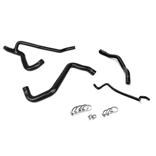 Ford 07-10 Mustang GT V8 HPS High Temp 3-ply Reinforced Silicone Radiator Hose Kit Black is designed to replace stock OEM rubber hoses which can eventually weaken over time, leading to premature failure. With premium quality silicone and race inspired design, this HPS silicon radiator hose kit can withstand the harsh high temperature and high pressure operating conditions of the engine yet still maintaining peak efficiency during competition or daily driving. HPS silicone radiator hose kit has all the correct bends and curves for a perfect fit replacement for your OEM rubber coolant hoses, compare to the universal hoses you can get from the local auto store, HPS hose kit is much easier to work with. Max. Temperature Rating: 350 deg. F. 100% Stainless Steel Clamps are included for easy installation. This product fits Ford 2007-2010 Mustang GT V8.