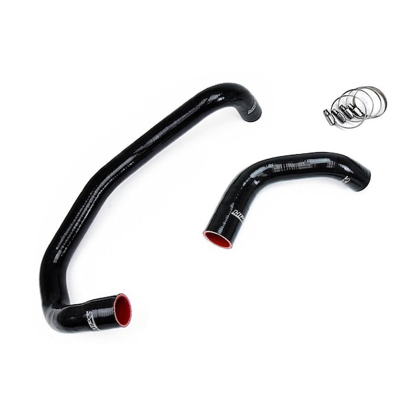 This HPS High Temp 3-ply Reinforced Silicone Radiator Coolant Hose Kit is designed to replace stock OEM rubber upper and lower radiator hoses which weaken and fail over time. With premium quality silicone and racing inspired design, this hose kit can withstand high temperature and high pressure operating conditions of the engine yet still mainta in peak efficiency. HPS silicone hose kits have all the correct bends and sizes for a perfect fitting replacement for your OEM rubber coolant hoses. Compared to the universal hoses you can get from the local auto store, HPS hose kits are much easier to work with. Maximum temperature rating: 350 degrees Fahrenheit. 100% stainless steel clamps are included for easy installation.