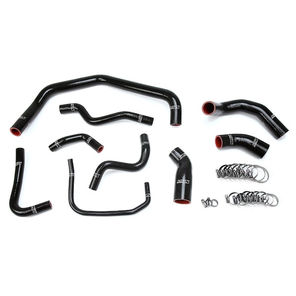 HPS black high temp 3-ply reinforced silicone Radiator hose kit (part number 57-1728-BLK) replaces 2003-2004 Ford Mustang SVT Cobra 4.6L V8 Supercharged stock OEM rubber radiator coolant hoses with premium grade high-heat resistance material which meets or exceeds OE specifications (Maximum temperature rating: 350F). Compared to the local auto parts store universal hoses, HPS silicone Radiator hose kit has all the correct bends and curves for a perfect fitment. HPS silicone coolant hose kit includes 100% stainless steel non-perforated embossed hose clamps for easy installation, which do not cut through the silicone hoses. HPS silicone hoses can prevent and fix the coolant leaking and engine over heating problem caused by cracked, damaged or collapsed OEM rubber coolant hoses. Excellent for extreme ambient and radiant temperature conditions, HPS silicone hoses can withstand the harsh high temperature and high pressure operating conditions of the engine yet still maintaining peak efficiency during daily driving or racing competition. HPS silicone hose kit is backed by HPS Performance Products limited lifetime warranty.