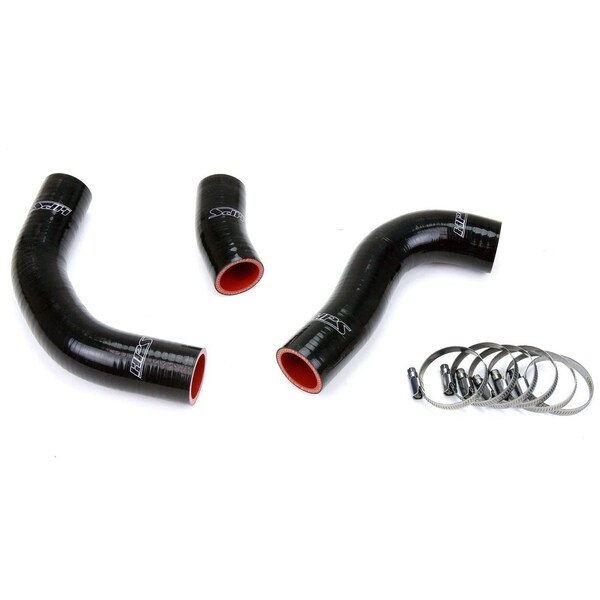 HPS black high temp 3-ply reinforced silicone Radiator hose kit (part number 57-1776-BLK) replaces Toyota 88-90 Land Cruiser FJ62 4.0L Inline 6 stock OEM rubber upper and lower radiator coolant hoses (part numbers: 16571-61110, 16573-61040, 16572-61020) with premium grade high-heat resistance material which meets or exceeds OE specifications (Maximum temperature rating: 350F). Compared to the local auto parts store universal hoses, HPS silicone Radiator hose kit has all the correct bends and curves for a perfect fitment. HPS silicone coolant hose kit includes 100% stainless steel non-perforated embossed hose clamps for easy installation, which do not cut through the silicone hoses. HPS silicone hoses can prevent and fix the coolant leaking and engine over heating problem caused by cracked, damaged or collapsed OEM rubber coolant hoses. Excellent for extreme ambient and radiant temperature conditions, HPS silicone hoses can withstand the harsh high temperature and high pressure operating conditions of the engine yet still maintaining peak efficiency during daily driving or racing competition. HPS silicone hose kit is backed by HPS Performance Products limited lifetime warranty.