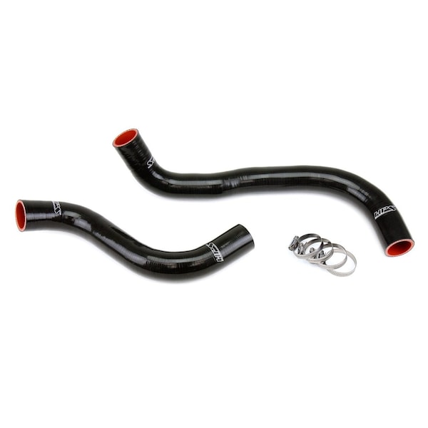 This HPS High Temp 3-ply Reinforced Silicone Radiator Coolant Hose Kit is designed to replace stock OEM rubber upper and lower radiator hoses which eventually weaken and fail. With premium quality silicone and racing inspired design, this silicone hose kit can withstand prolonged exposure to harsh high temperature and high pressure operating conditions during competition or daily driving without compromising durability. HPS silicone hose kits have all the correct bends and dimensions for a perfect fitting replacement of the OEM rubber coolant hoses. Compared to universal hoses from the local auto store, HPS silicone hose kits are much easier to work with. Maximum temperature rating: 350 degrees Fahrenheit. 100% stainless steel clamps are included for easy installation.
