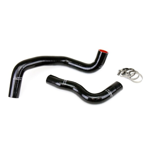 The HPS High Temp 3-ply Reinforced Silicone Radiator Coolant Hose Kit is designed to replace stock OEM rubber upper and lower radiator hoses which can eventually weaken over time, leading to premature failure. With premium quality silicone and racing inspired design, this silicone hose kit can withstand the harsh high temperature and high pressure operating conditions of the engine yet still mainta in peak efficiency during competition or daily driving. HPS silicone hose kits have all the correct bends and sizes for a perfect fit replacement for your OEM rubber coolant hoses. Compared to the universal hoses you can get from the local auto store, HPS silicone hose kits are much easier to work with. Maximum temperature rating: 350 degrees Fahrenheit. 100% stainless steel clamps are included for easy installation.