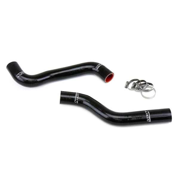 This HPS High Temp 3-ply Reinforced Silicone Radiator Hose Kit is designed to replace stock OEM rubber upper and lower radiator hoses which weaken over and fail over time. With premium quality silicone and performance inspired design, this coolant hose kit can withstand the harsh, high temperature and high pressure operating conditions under the hood through a wide range of driving conditions. HPS silicone hose kits have all the correct bends and dimensions to fit perfectly as replacements for OEM rubber coolant hoses. Compared to the universal hoses from the local auto store, HPS silicone hose kits are much easier to work with. Maximum temperature rating: 350 degrees Fahrenheit. 100% stainless steel embossed hose clamps are included for easy installation.
