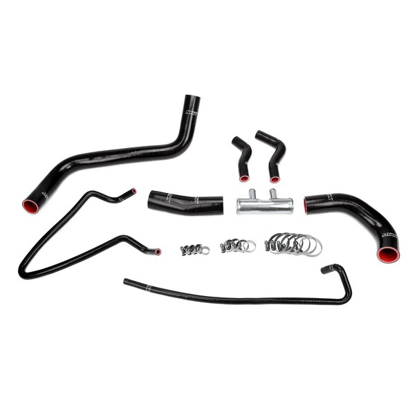 The HPS High Temp 3-ply Reinforced Silicone Radiator Coolant Hose Kit is designed to replace stock OEM rubber upper and lower radiator hoses which can eventually weaken over time, leading to premature failure. With premium quality silicone and racing inspired design, this silicone hose kit can withstand the harsh high temperature and high pressure operating conditions of the engine yet still mainta in peak efficiency during competition or daily driving. This silicone radiator hose kit features an aluminum joiner to connect connect the 4 piece lower radiator hose that is designed to partitions to prevent air cavities from forming. HPS silicone hose kits have all the correct bends and sizes for a perfect fit replacement for your OEM rubber coolant hoses. Compared to the universal hoses you can get from the local auto store, HPS silicone hose kits are much easier to work with. Maximum temperature rating: 350 degrees Fahrenheit. 100% stainless steel clamps are included for easy installation.