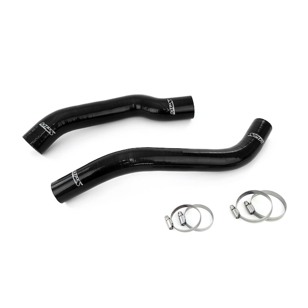 This HPS High Temp 3-ply Reinforced Silicone Radiator Coolant Hose Kit is designed to replace stock OEM rubber upper and lower radiator hoses which can weaken over time, leading to premature failure. With premium quality silicone and performance inspired design, this silicone hose kit can withstand harsh high temperature and high pressure operating conditions while maintaining peak performance during competition or daily driving. HPS silicone hose kits have all the correct bends and dimensions for a perfect fitting replacement of the OEM rubber coolant hoses. Compared to universal hoses from the local auto store, HPS silicone hose kits are much easier to work with. Maximum temperature rating: 350 degrees Fahrenheit. 100% stainless steel clamps are included for easy installation.