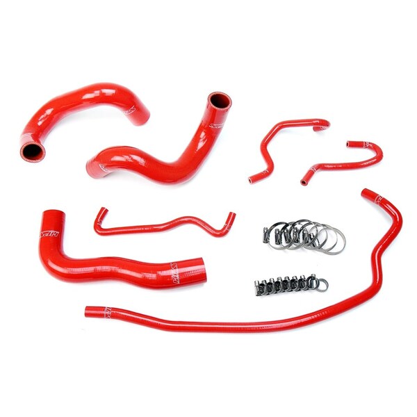 HPS red high temp 3-ply reinforced silicone complete radiator hose kit (total 7 pcs, part number 57-1724-RED) replaces 2014-2019 Toyota Corolla 1.8L stock OEM rubber upper and lower radiator hoses, radiator overflow hose and bypass coolant hoses with high-heat resistance material which meets or exceeds OE specifications (Maximum temperature rating: 350F). Excellent for extreme ambient and radiant temperature conditions, HPS premium quality silicone hoses can withstand the harsh high temperature and high pressure operating conditions of the engine yet still maintaining peak efficiency during daily driving or racing competition. HPS silicone hose kit includes 100% stainless steel non-perforated embossed hose clamps for easy installation, which do not cut through the silicone hoses. Compared to the universal hoses which could be purchased from local auto parts store, HPS silicone radiator hose kit has all the correct bends and curves for a perfect fitment. HPS silicone hose kit is backed by HPS Performance Products limited lifetime warranty. Vehicle application: 2014-2018 Toyota Corolla 1.8L