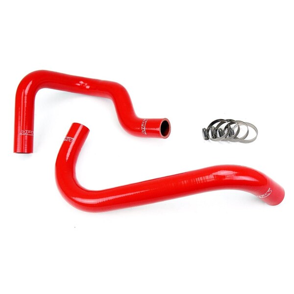 HPS red high temp 3-ply reinforced silicone Radiator hose kit (part number 57-1746R-RED) replaces Toyota 95-04 Tacoma 2.4L 4 Cylinder stock OEM rubber upper and lower radiator coolant hoses (part numbers: 16571-0C011, 16572-0C011) with premium grade high-heat resistance material which meets or exceeds OE specifications (Maximum temperature rating: 350F). Compared to the local auto parts store universal hoses, HPS silicone Radiator hose kit has all the correct bends and curves for a perfect fitment. HPS silicone coolant hose kit includes 100% stainless steel non-perforated embossed hose clamps for easy installation, which do not cut through the silicone hoses. HPS silicone hoses can prevent and fix the coolant leaking and engine over heating problem caused by cracked, damaged or collapsed OEM rubber coolant hoses. Excellent for extreme ambient and radiant temperature conditions, HPS silicone hoses can withstand the harsh high temperature and high pressure operating conditions of the engine yet still maintaining peak efficiency during daily driving or racing competition. HPS silicone hose kit is backed by HPS Performance Products limited lifetime warranty.
