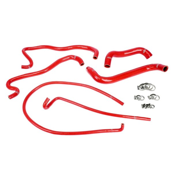 This HPS High Temp 3-ply Reinforced Silicone Radiator and Heater Hose Kit is designed to replace stock OEM rubber upper and lower radiator hoses, as well as HVAC heater hoses that are known to harden and fail over time. With premium quality silicone and race inspired design, this coolant hose kit can withstand the harsh, high temperature and high pressure operating conditions under the hood through a wide range of driving conditions. HPS silicone hose kits have all the correct bends and dimensions to perfectly fit as replacements for OEM rubber coolant hoses. Compared to the universal hoses from the local auto store, HPS silicone hose kits are much easier to work with. Maximum temperature rating: 350 degrees Fahrenheit. 100% stainless steel clamps are included for easy installation.
