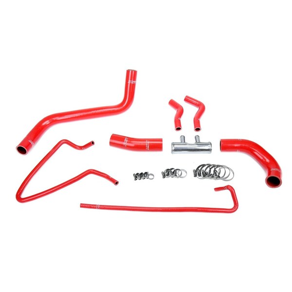 The HPS High Temp 3-ply Reinforced Silicone Radiator Coolant Hose Kit is designed to replace stock OEM rubber upper and lower radiator hoses which can eventually weaken over time, leading to premature failure. With premium quality silicone and racing inspired design, this silicone hose kit can withstand the harsh high temperature and high pressure operating conditions of the engine yet still mainta in peak efficiency during competition or daily driving. This silicone radiator hose kit features an aluminum joiner to connect connect the 4 piece lower radiator hose that is designed to partitions to prevent air cavities from forming. HPS silicone hose kits have all the correct bends and sizes for a perfect fit replacement for your OEM rubber coolant hoses. Compared to the universal hoses you can get from the local auto store, HPS silicone hose kits are much easier to work with. Maximum temperature rating: 350 degrees Fahrenheit. 100% stainless steel clamps are included for easy installation.