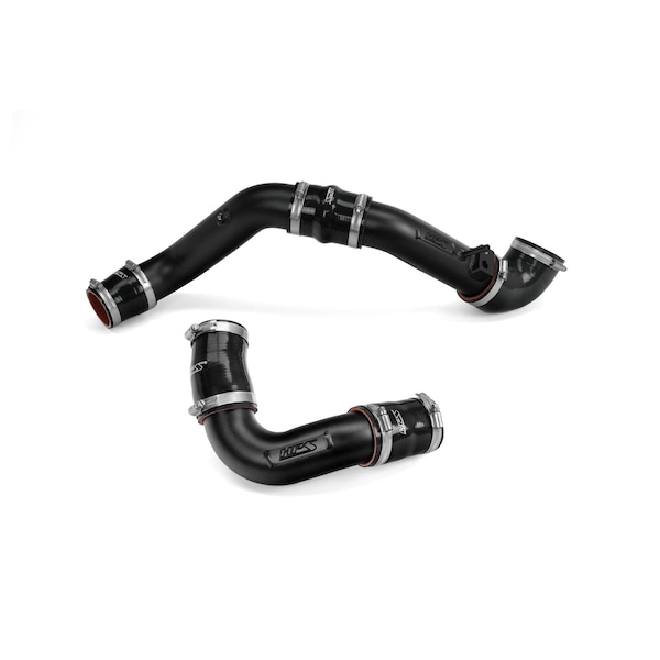 The HPS Performance Hot and Cold Side Charge Pipe Kit is the essential upgrade engineered to replace the factory charge pipe system, providing significant performance improvements for your vehicle. With a larger 2.25-inch diameter on the hot side and 2.5-inch diameter cold side pipes made from 6061 mandrel bent aluminum, the enhanced airflow and reduced restriction increases the engine output by 10.2 horsepower and 9.8 lb-ft of torque, resulting in improved throttle response, acceleration, and overall engine performance. The HPS Performance Charge Pipe Kit is made with reliability in mind. This kit utilizes 4-ply high temperature and oil resistant silicone couplers and stainless steel clamps to deliver dependable performance under the most demanding driving conditions. The charge pipe features a 1/8 in NPT port on the lower cold-side pipe to facilitate the installation of additional sensors, injectors, or solenoids. in addition to the enhanced performance, the HPS Performance Charge Pipe Kit also offers improved reliability. The included 4-ply reinforced oil resistant silicone couplers and embossed stainless steel hose clamps ensure a secure and leak-free connection. These couplers are designed to handle high boost pressures, resist degradation from oil, and provide excellent heat resistance while the stainless steel hose clamps offer a tight fit that prevents slipping or loosening. This kit is designed to be a direct bolt-on replacement, making installation straightforward and hassle-free. All the necessary hardware and components are included, ensuring a proper and secure fit. With its larger diameter charge pipes, durable construction, and included oil resistant silicone couplers and stainless steel hose clamps, this kit offers improved throttle response, increased horsepower, and a more exhilarating drive with the HPS Performance Charge Pipe Kit installed in your vehicle.