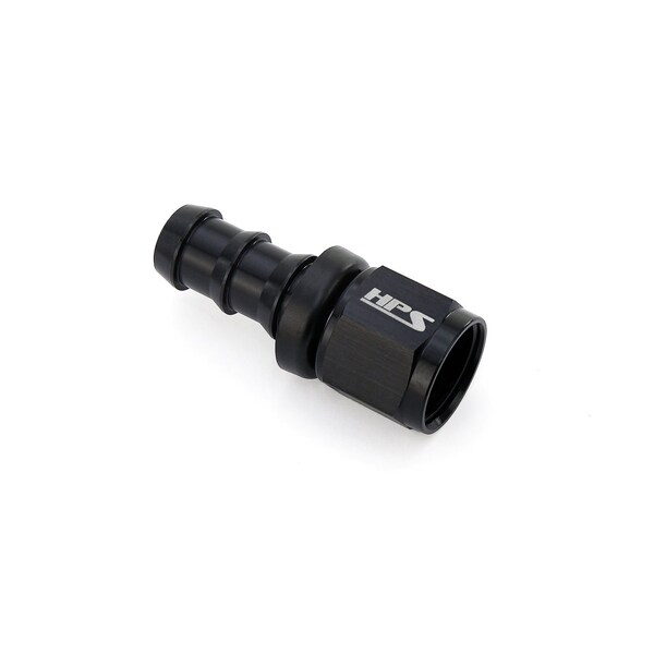 HPS 150 Series Hose End Fittings are designed to fit HPS 150 Series Push-On Rubber Flex Hoses. This fitting uses a multi-barb design to keep the hose secure and leak-free even without the use of clamps. These fittings are easy to assemble without the use of any special tools. HPS 150 Series fittings come in Type II anodized black for a clean appearance that is corrosion and scuff resistant. Suitable for transporting air, water, coolant, oil, and most fuels.