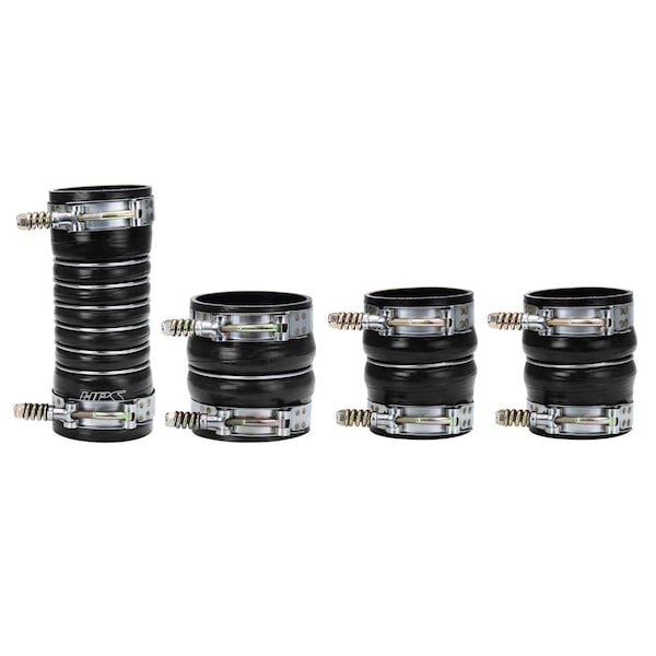 This HPS 4-ply reinforced silicone intercooler boot kit replaces the stock OEM intercooler boots that are known to weaken and fail over time. Made with premium quality oil-resistant fluorolined silicone and crafted with performance driven design, this boot kit can withstand high boost pressure and ultra high temperature conditions under the hood through a wide range of driving conditions. Mitigate the risk of boost leak with boots that can withstand over 100 PSI. This HPS silicone boot kit is designed using OEM parts to ensure a perfect fit. Avoid expensive towing fees by upgrading your truck with an HPS Silicone Intercooler Boot Kit. Maximum temperature rating: 500 degrees Fahrenheit. Heavy duty stainless steel spring loaded T-bolt clamps are included for easy installation.