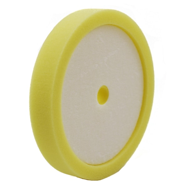 Crafted in a classic, tried and true deep-dish style that provides a wide, flat buffing surface and recessed area that neatly conceals the backing plate, protecting paint from dreaded plate bump. HI-BUFF Medium Cut Yellow Recessed Foam Pad is an everyday pad for average/medium to light oxidation. 8" pad.