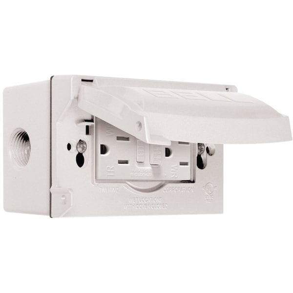For use in wet, damp or dry locations. Kit is a complete weatherproof installation, includes weatherproof box, cover, GFCI receptacle and multi-lingual instructions. UL Listed. C/UL Compliant.