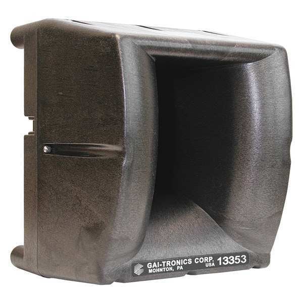 Amplified Speaker, Indoor/Outdoor, Overall Height (In.) 9 17/32 in, Overall Width (In.) 8 1/4 in, Enclosure Color Black, Enclosure Material Glass/Reinforced Polyester, Max. Wattage 8 W, Impedance (Ohms) 8 ohm, Frequency Response 450Hz to 3000Hz, Weight (Lbs.) 6.6 lb, For Use With PA Systems, Includes 120 VAC Power Supply